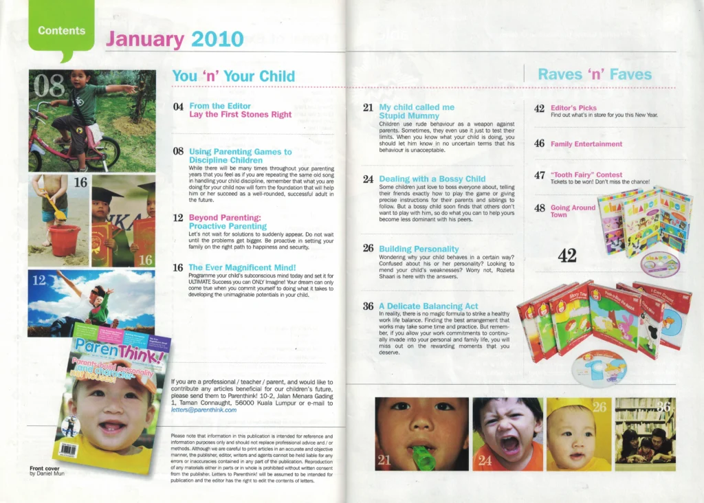 From parenting insights to childhood development features, every spread was art-directed for clarity and emotional connection.